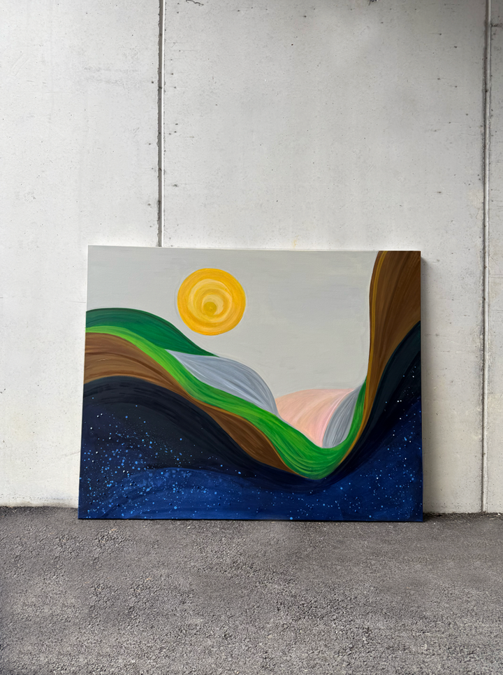 O azul intenso traduz a noite da alma, enquanto o sol que desponta no alto lembra que a luz nunca deixa de existir. Ainda que o vale dure mais do que gostaríamos, ele nunca é o fim.